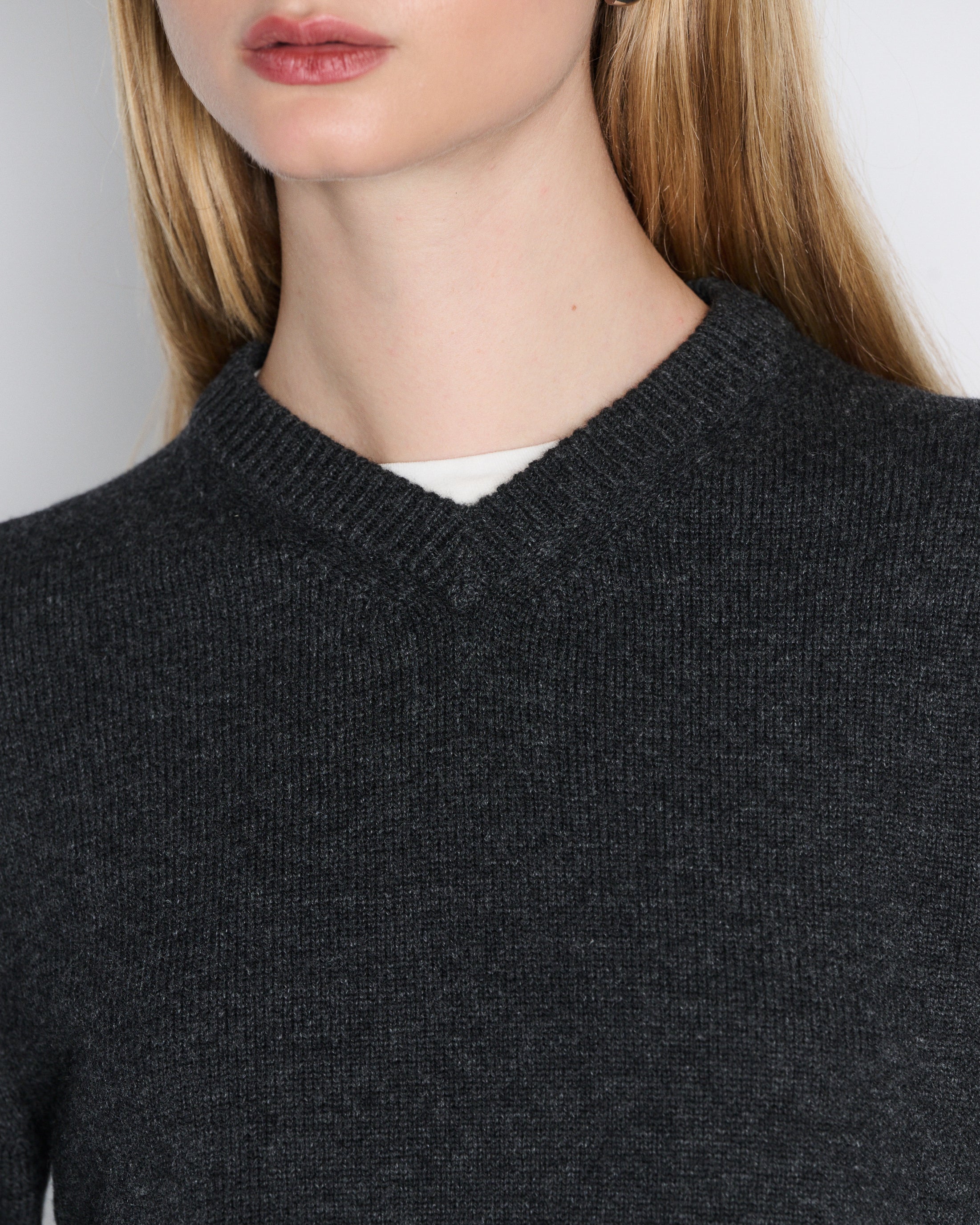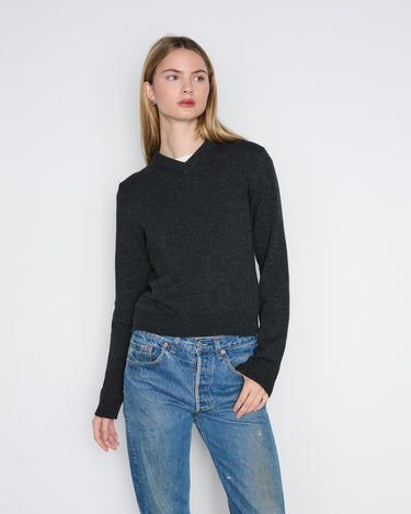 The RLT v-neck sweater is made from our signature cashmere wool blend locally in Los Angeles. With a 90's-inspired high v-neck and thick weave, this sweater can be worn alone or layered. We recommend sizing up for a looser look.