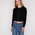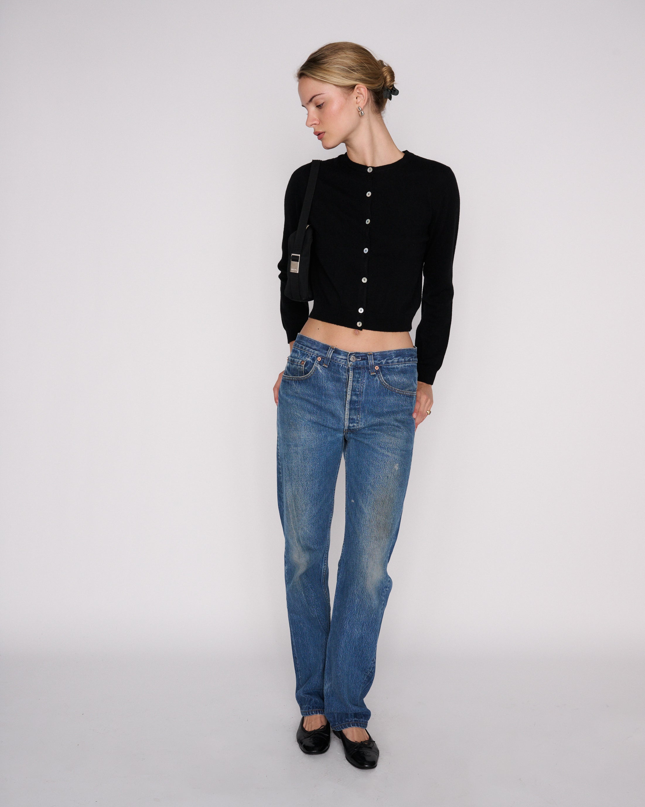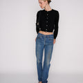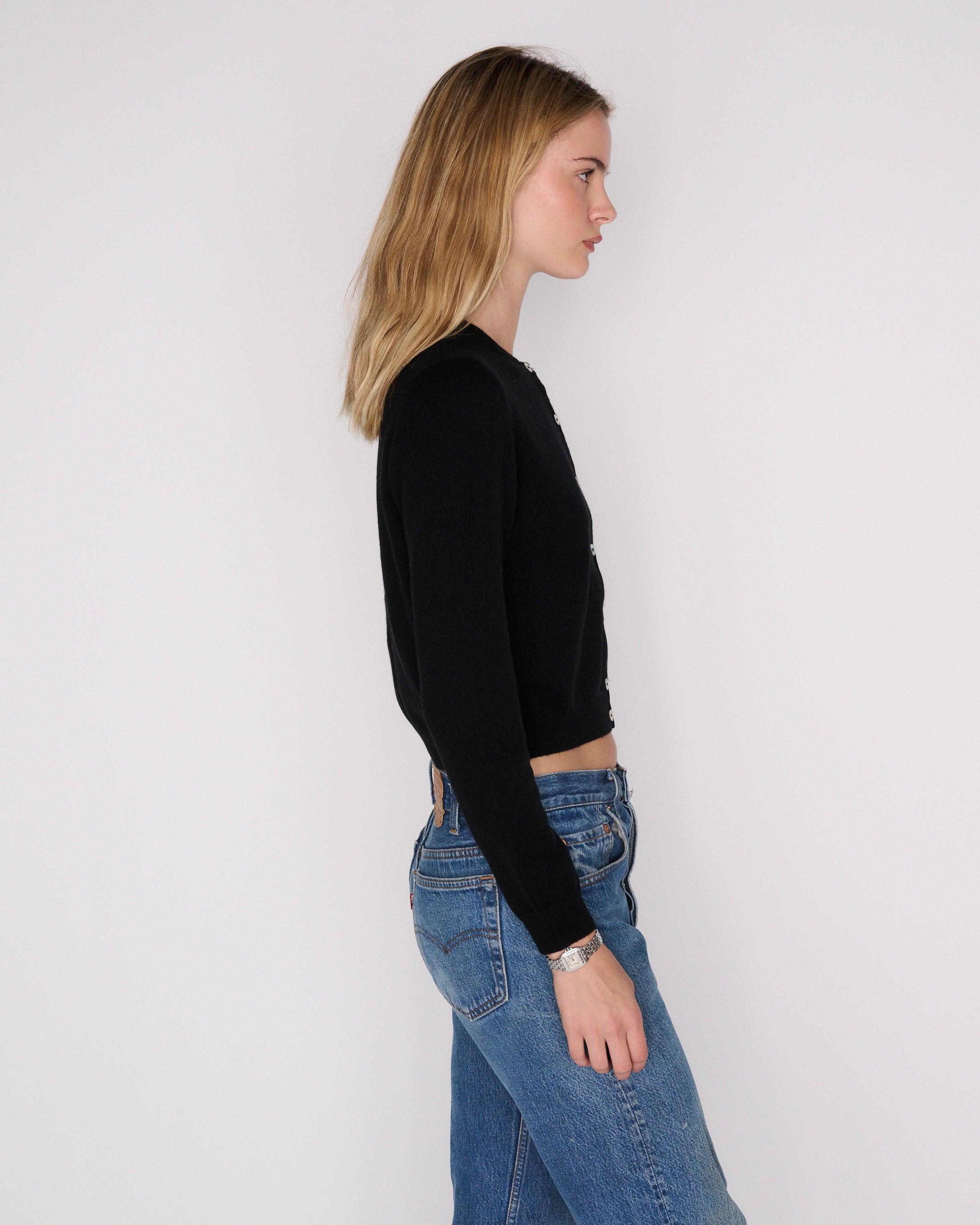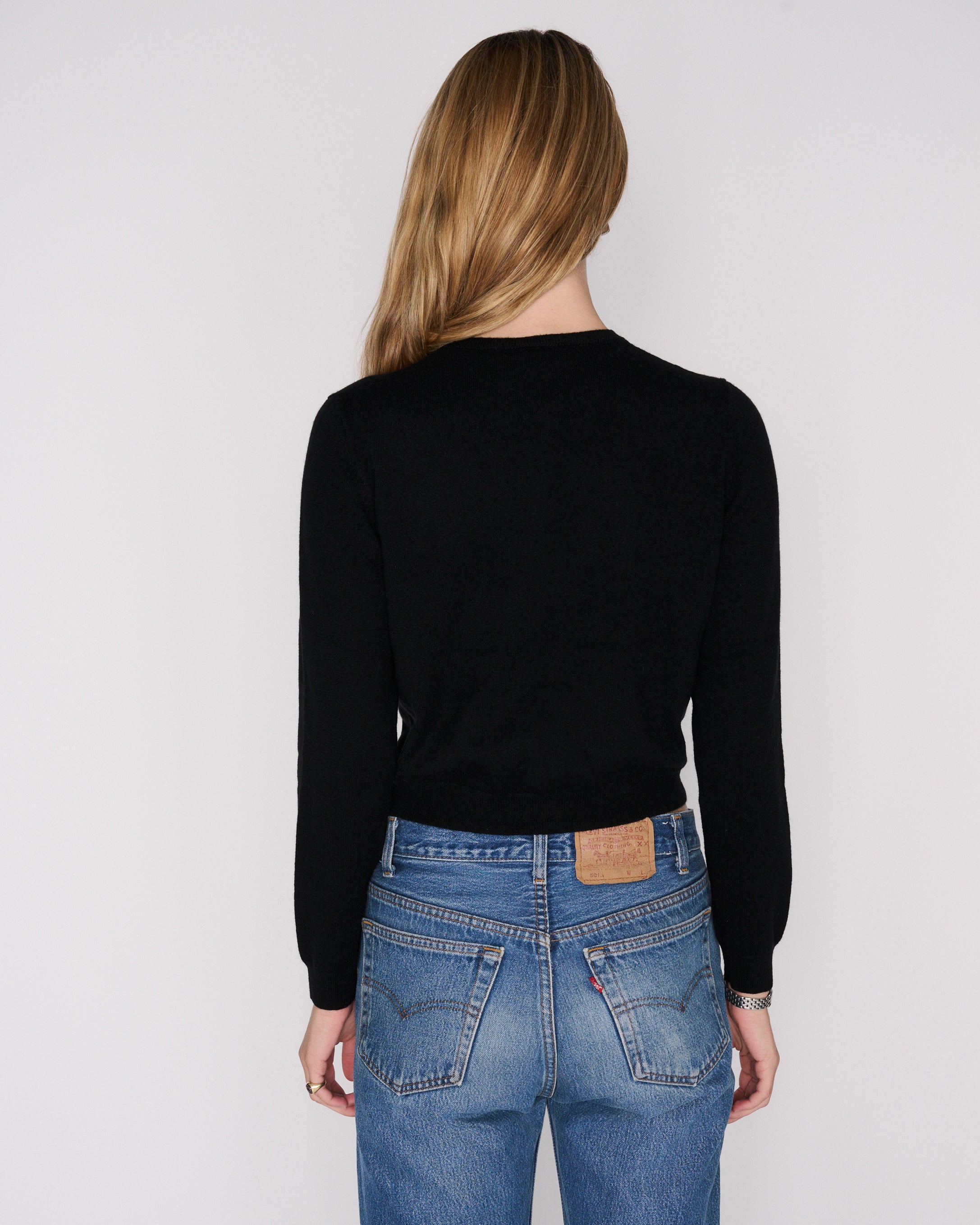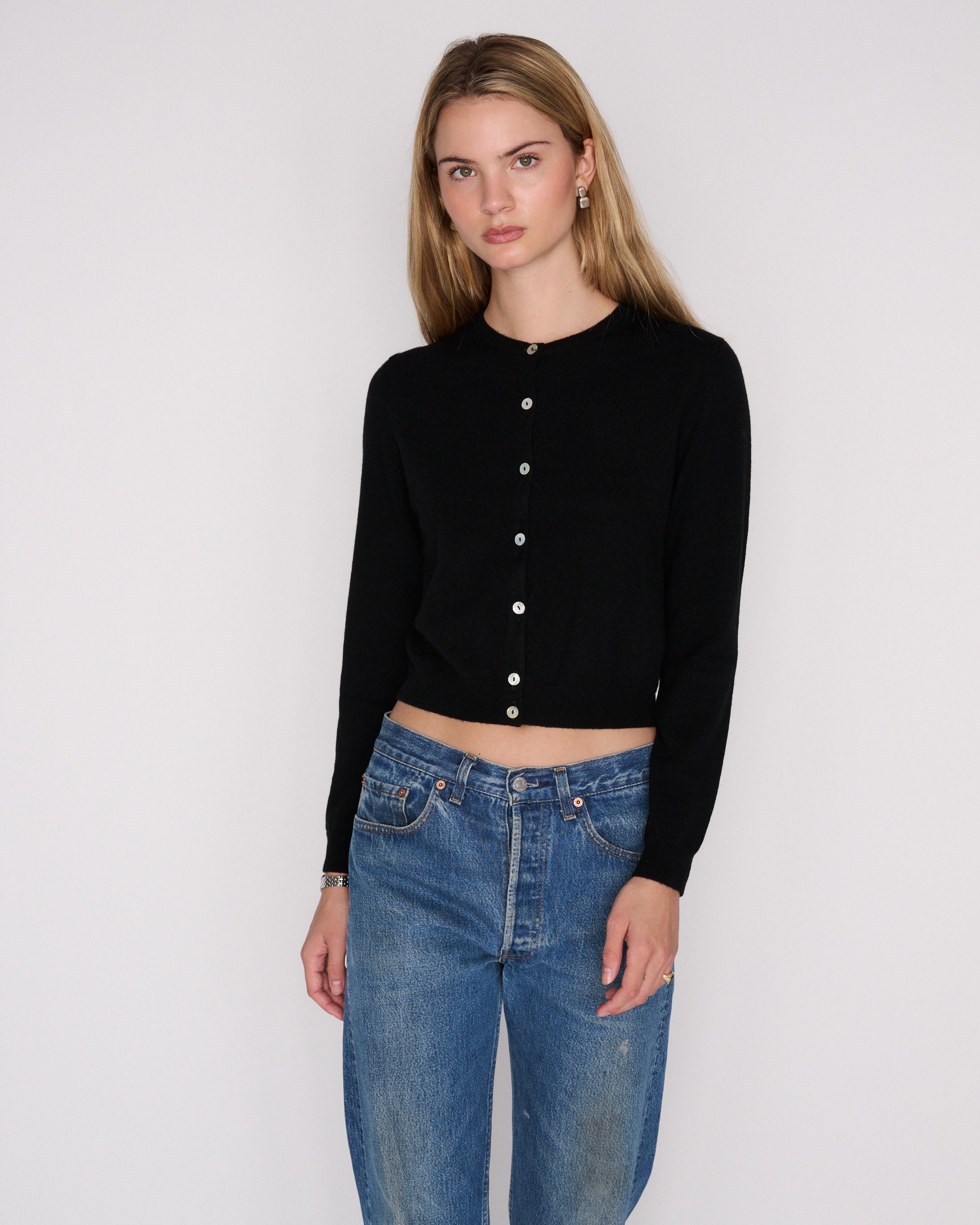 The Rachel sweater is a cashmere wool blend cardigan with mother of pearl buttons. Intended to have a mildly cropped and boxy fit. Wear it alone buttoned up or open. We recommend sizing up for a looser fit. For more assistance with fit, kindly email us at info@shoprlt.com.