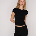The Soft Baby tee is crafted locally in LA using 100% cotton, this baby tee is designed to have a shrunken fit. Just like your favorite vintage tee, it’s finished with a box stitch sleeve and hem.