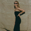The Sophia dress is a slinky strapless column dress made to move with you. Formal enough for weddings and versatile enough to style for the day, the Sophia dress is ready to be packed up and taken wherever this summer brings you!