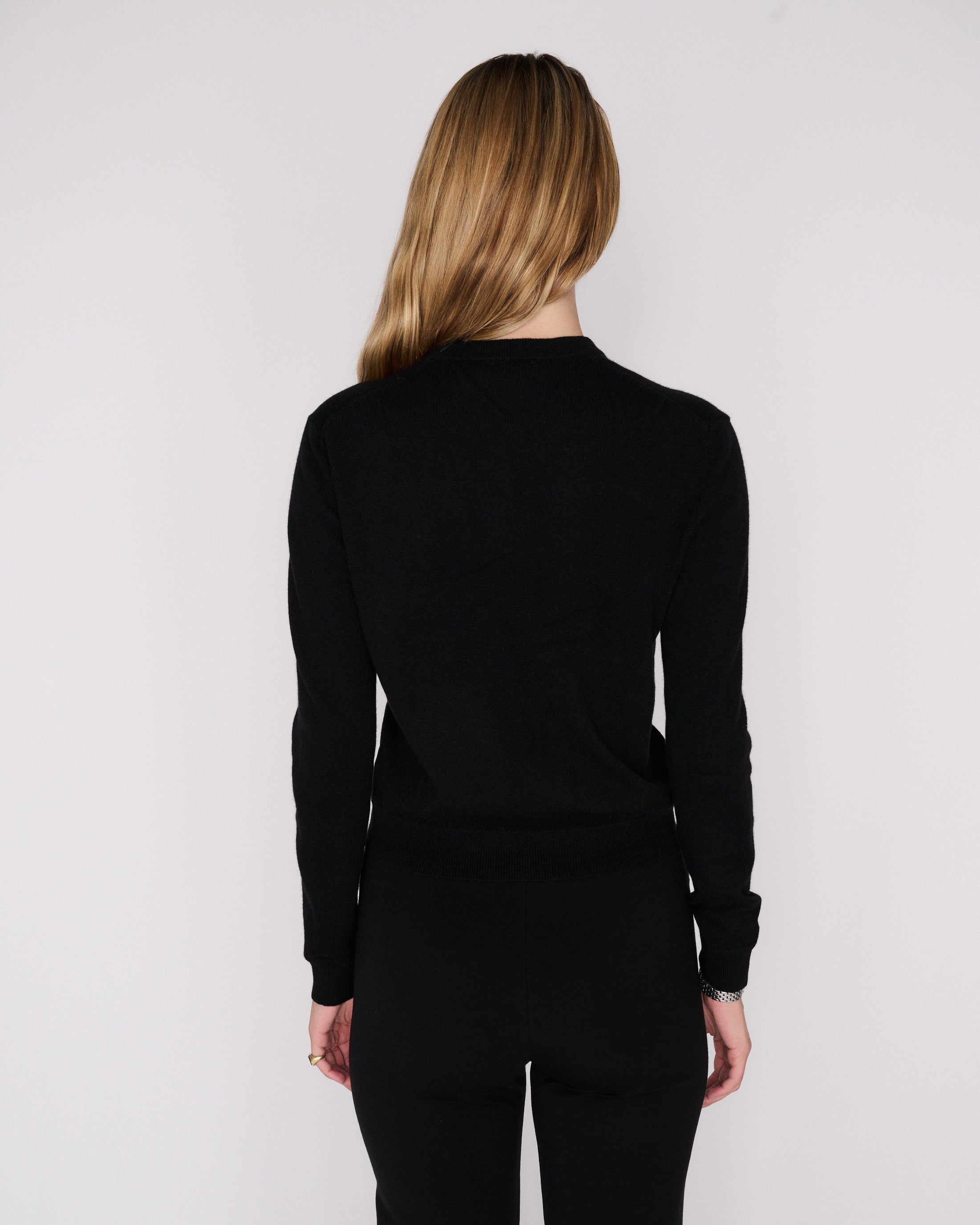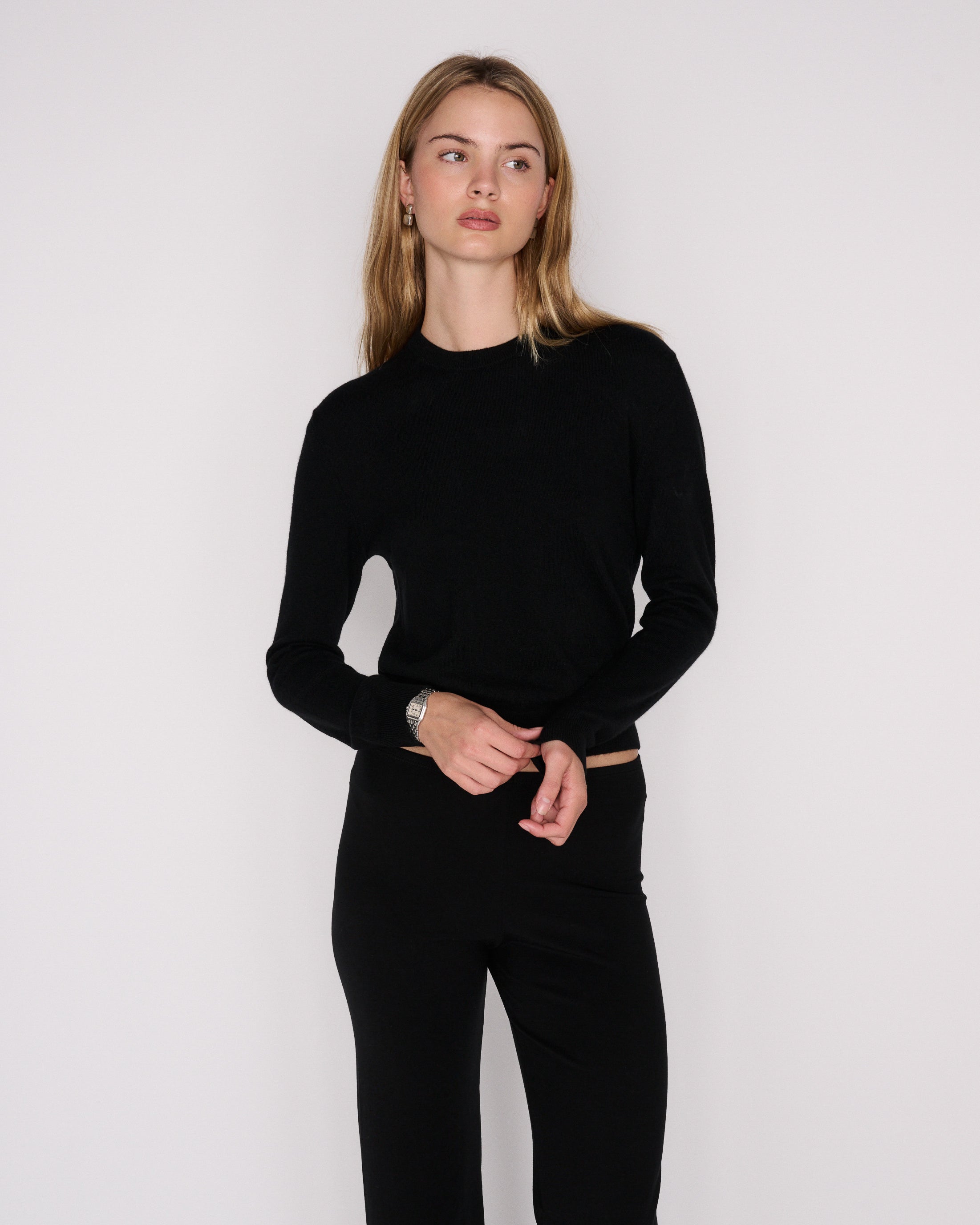 The Teri sweater is a cashmere wool blend sweater with a slightly cropped, boxy fit. Made here in Los Angeles, it's ribbed cuffs and hem allows for easy styling for all seasons.