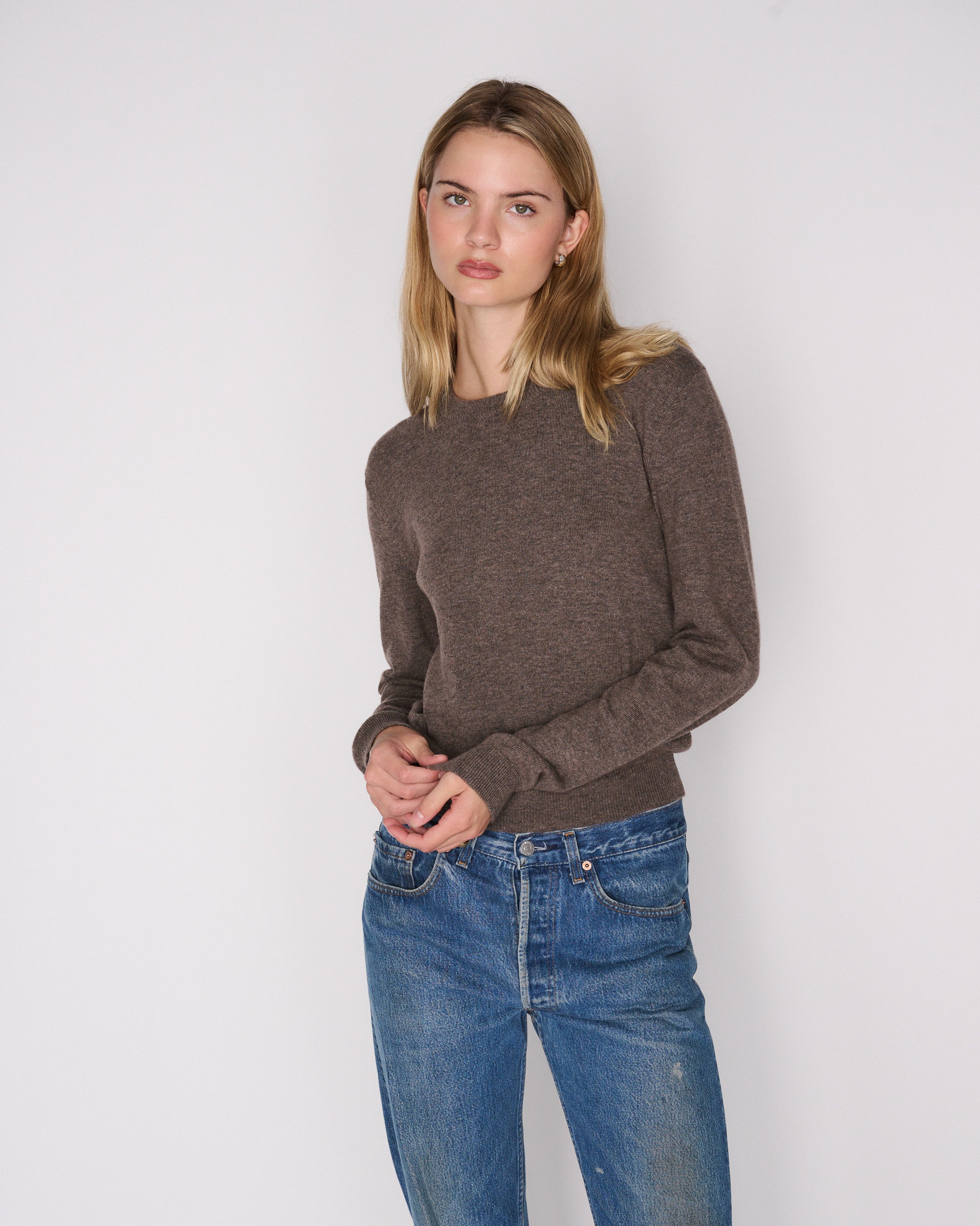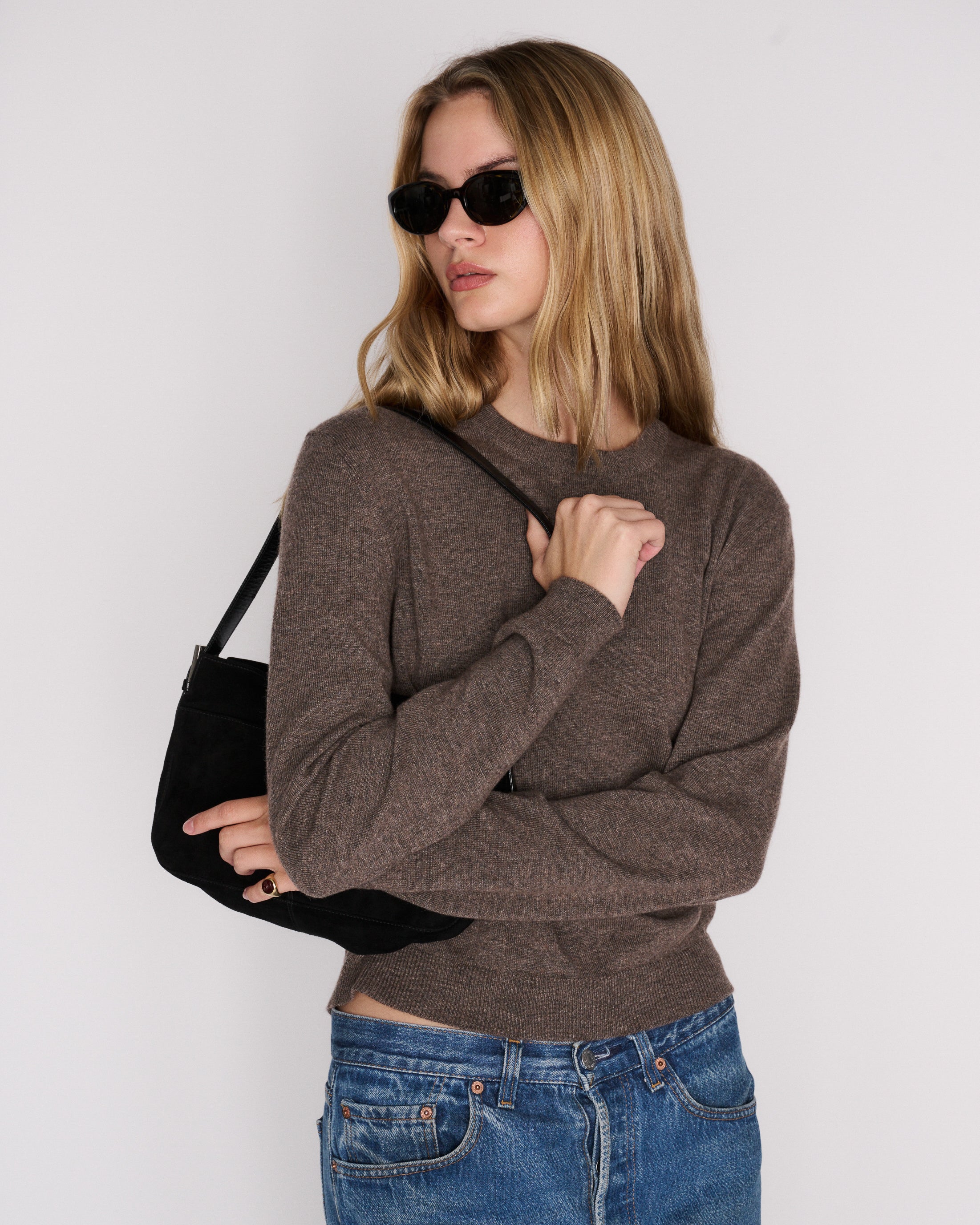 The Teri sweater is a cashmere wool blend sweater with a slightly cropped, boxy fit. Made here in Los Angeles, it's ribbed cuffs and hem allows for easy styling for all seasons.