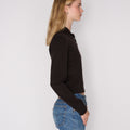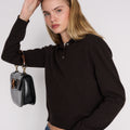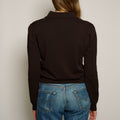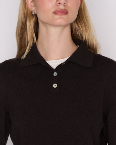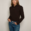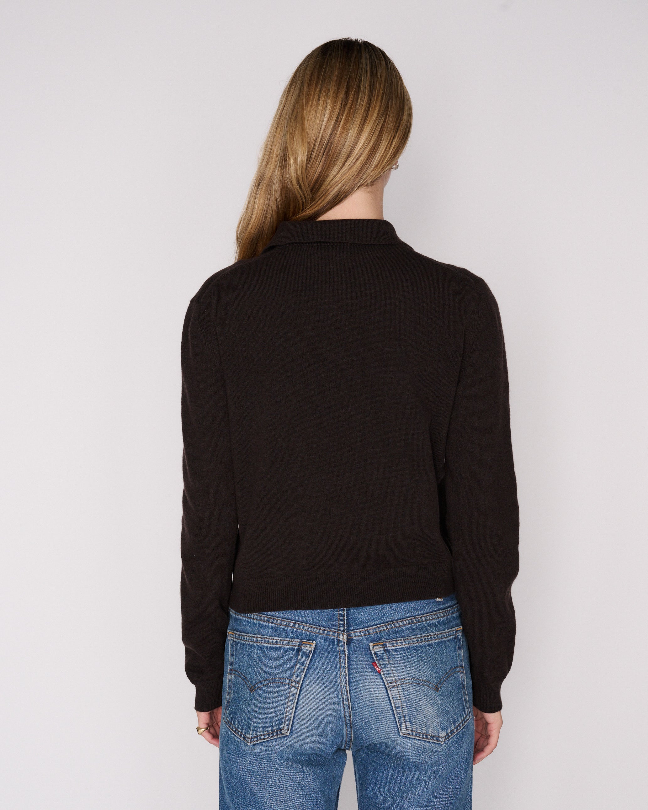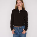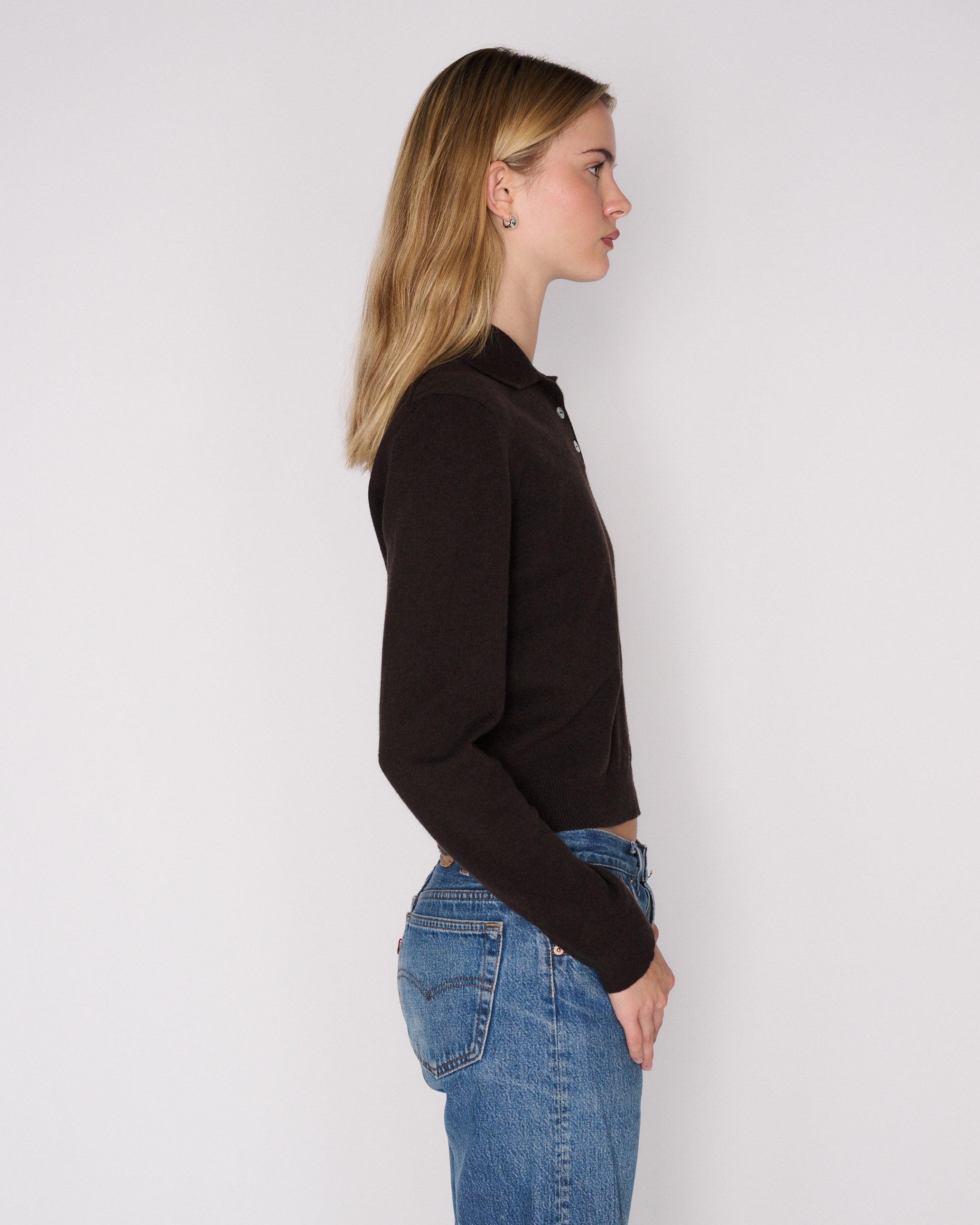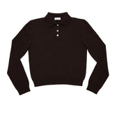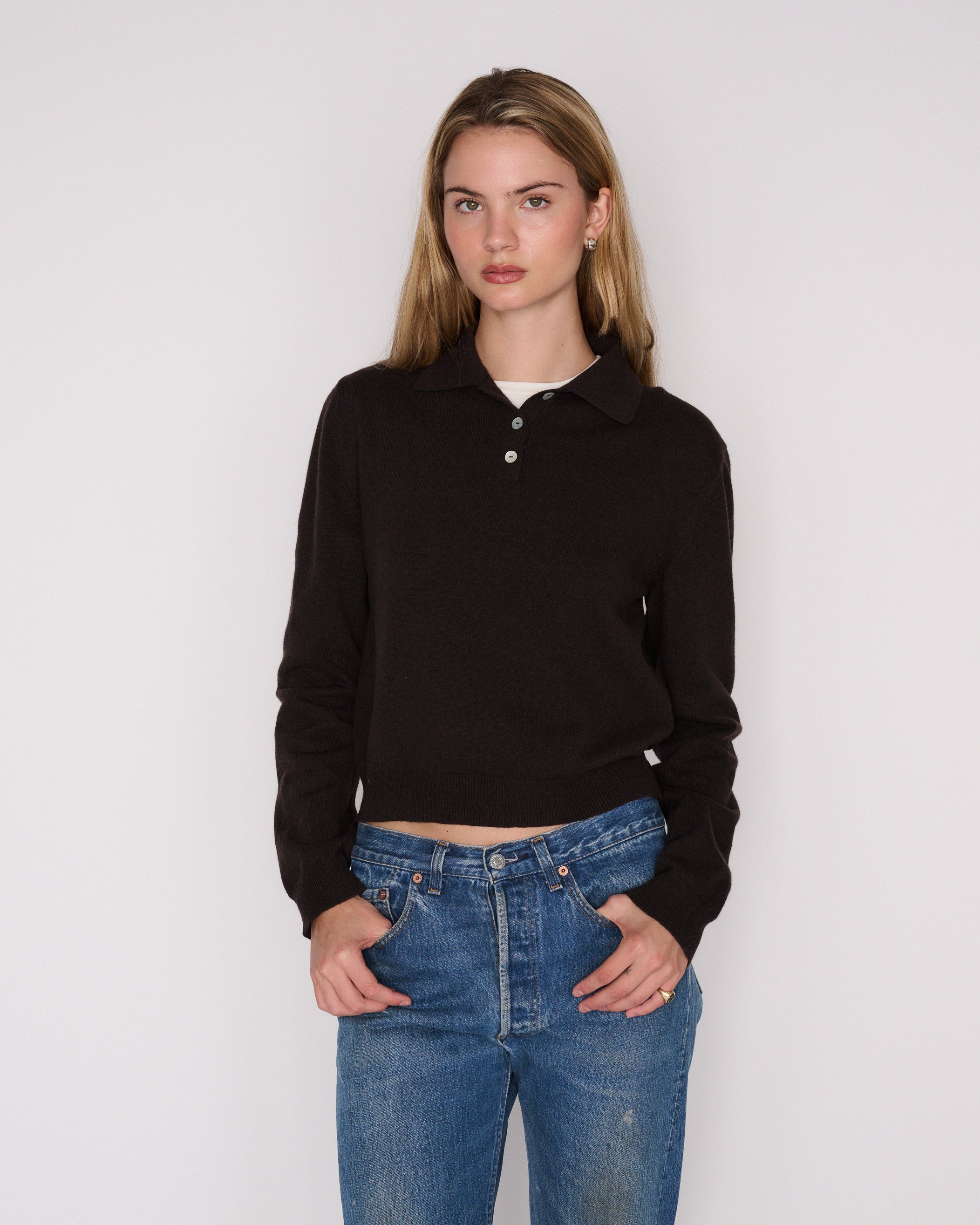 The RLT polo sweater is made from our signature cashmere wool blend and finished with mother of pearl buttons. Intended to have a mildly cropped and boxy fit, this sweater can be worn alone or layered. We recommend sizing up for a looser look. For more assistance, kindly email us at info@shoprlt.com.