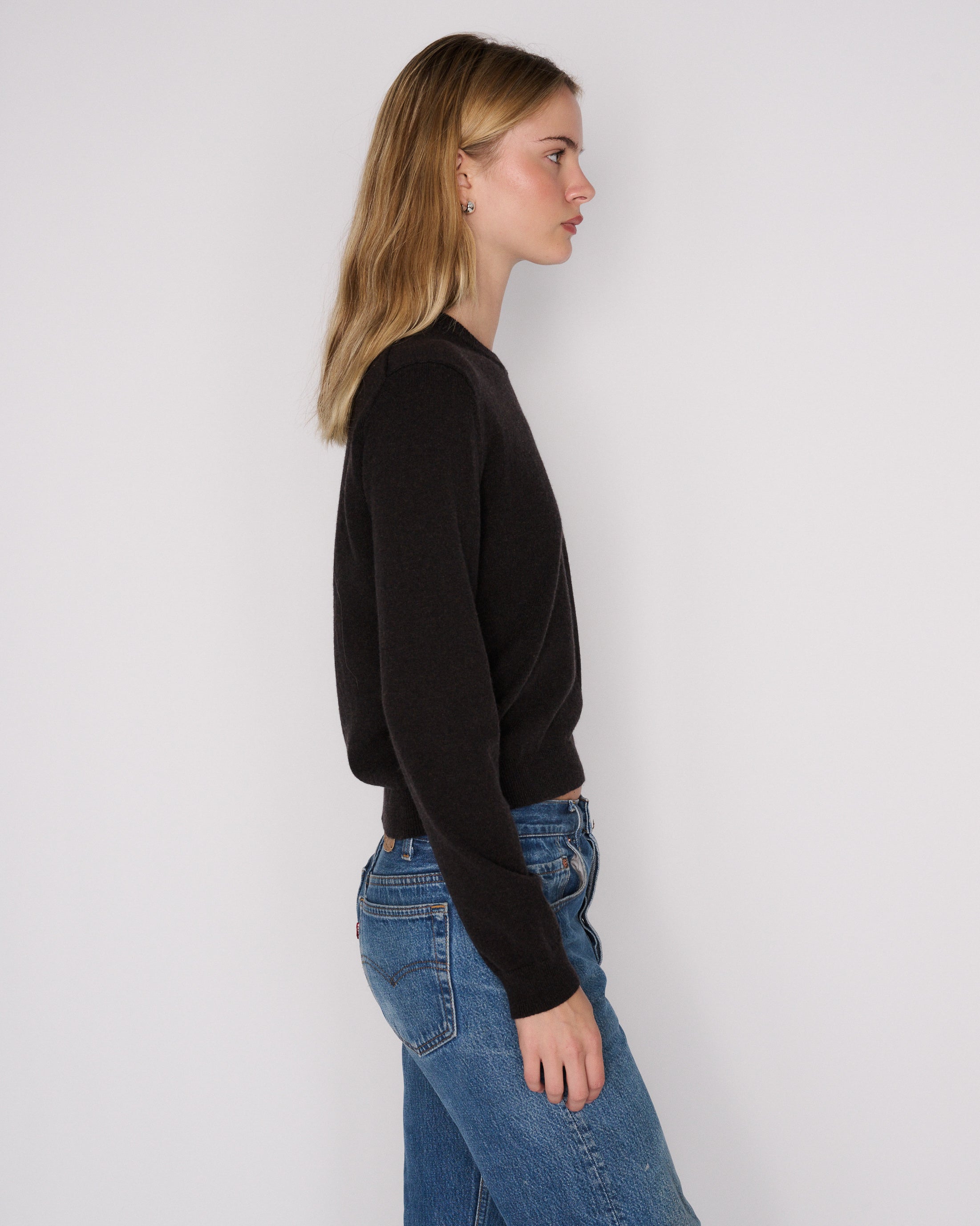 The Teri sweater is a cashmere wool blend sweater with a slightly cropped, boxy fit. Made here in Los Angeles, it's ribbed cuffs and hem allows for easy styling for all seasons.