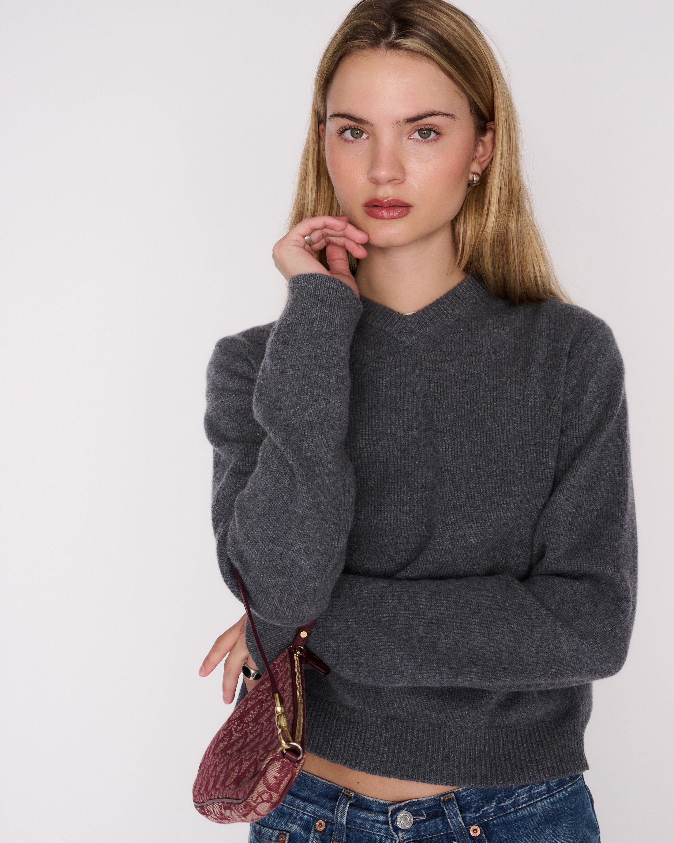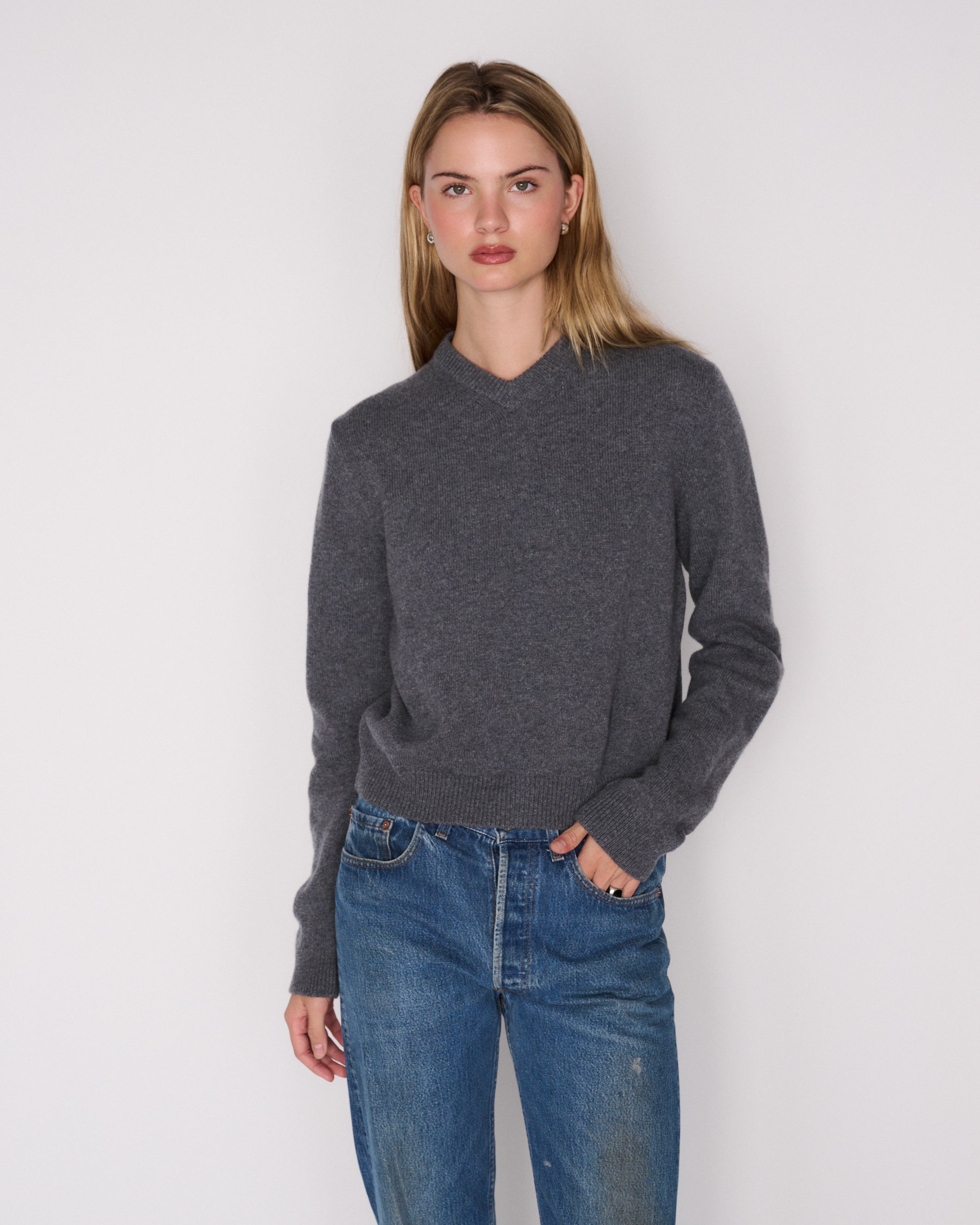 The RLT v-neck sweater is made from our signature cashmere wool blend locally in Los Angeles. With a 90's-inspired high v-neck and thick weave, this sweater can be worn alone or layered. We recommend sizing up for a looser look.