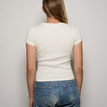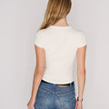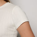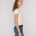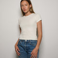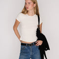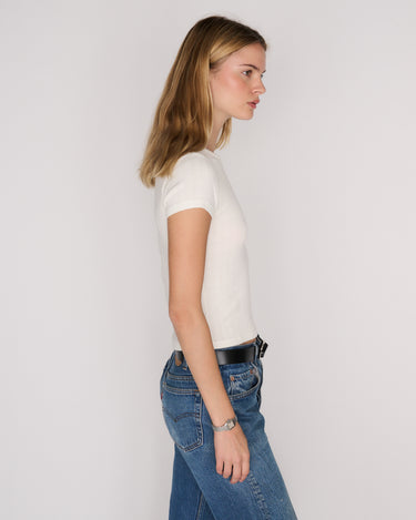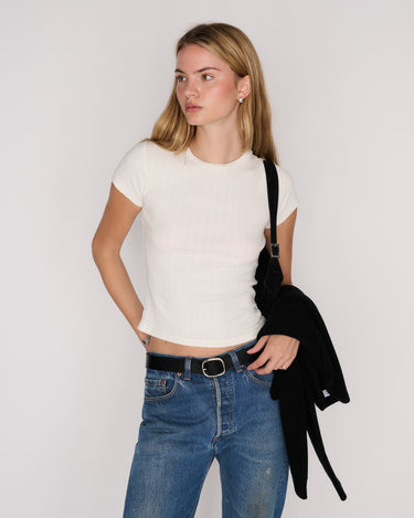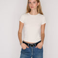 The RLT wide baby ribbed tee is crafted locally in LA using 100% cotton, this is designed to have a fitted look. Just like your favorite vintage tee, it’s finished with a box stitch sleeve and hem.