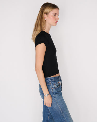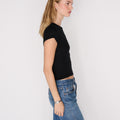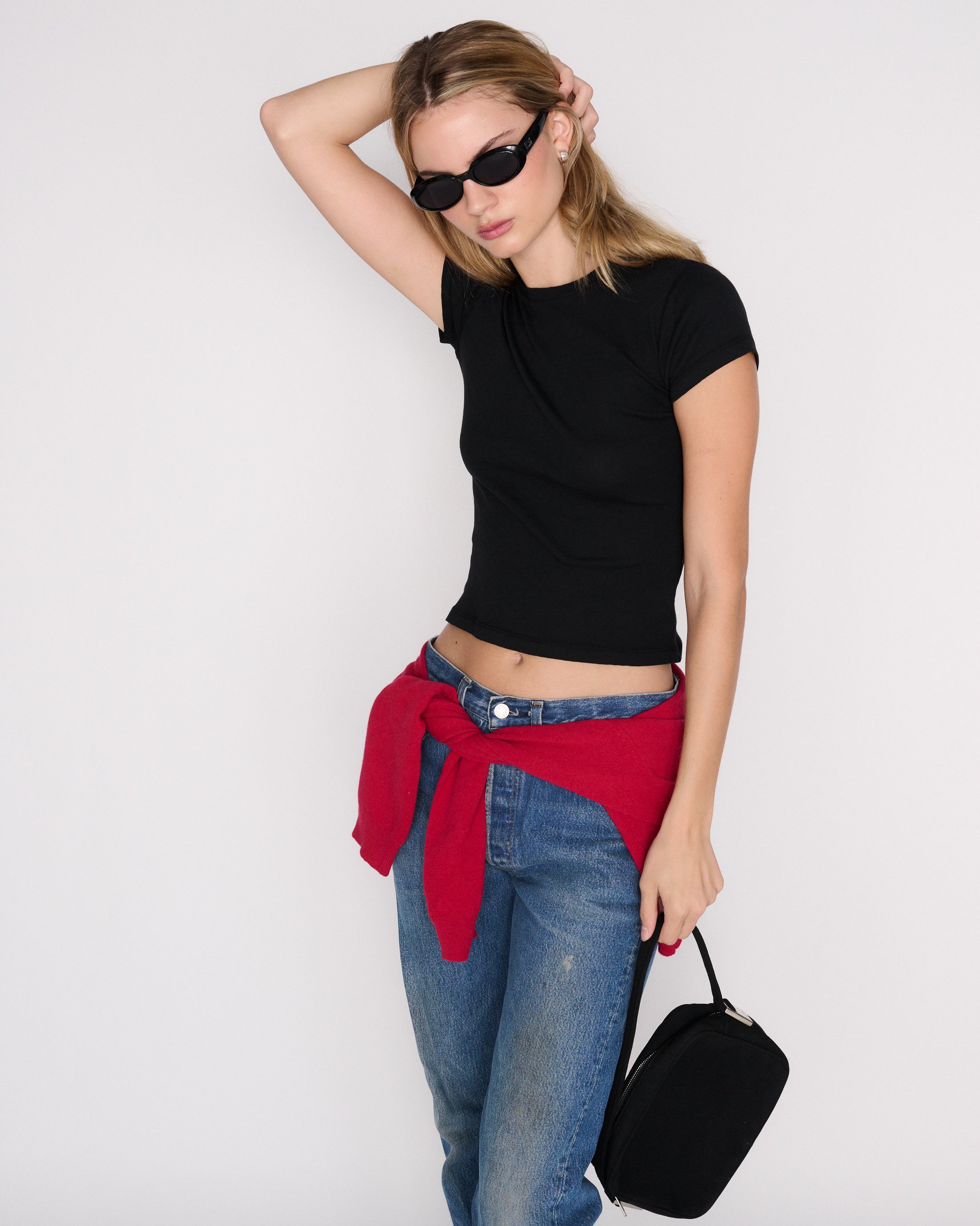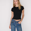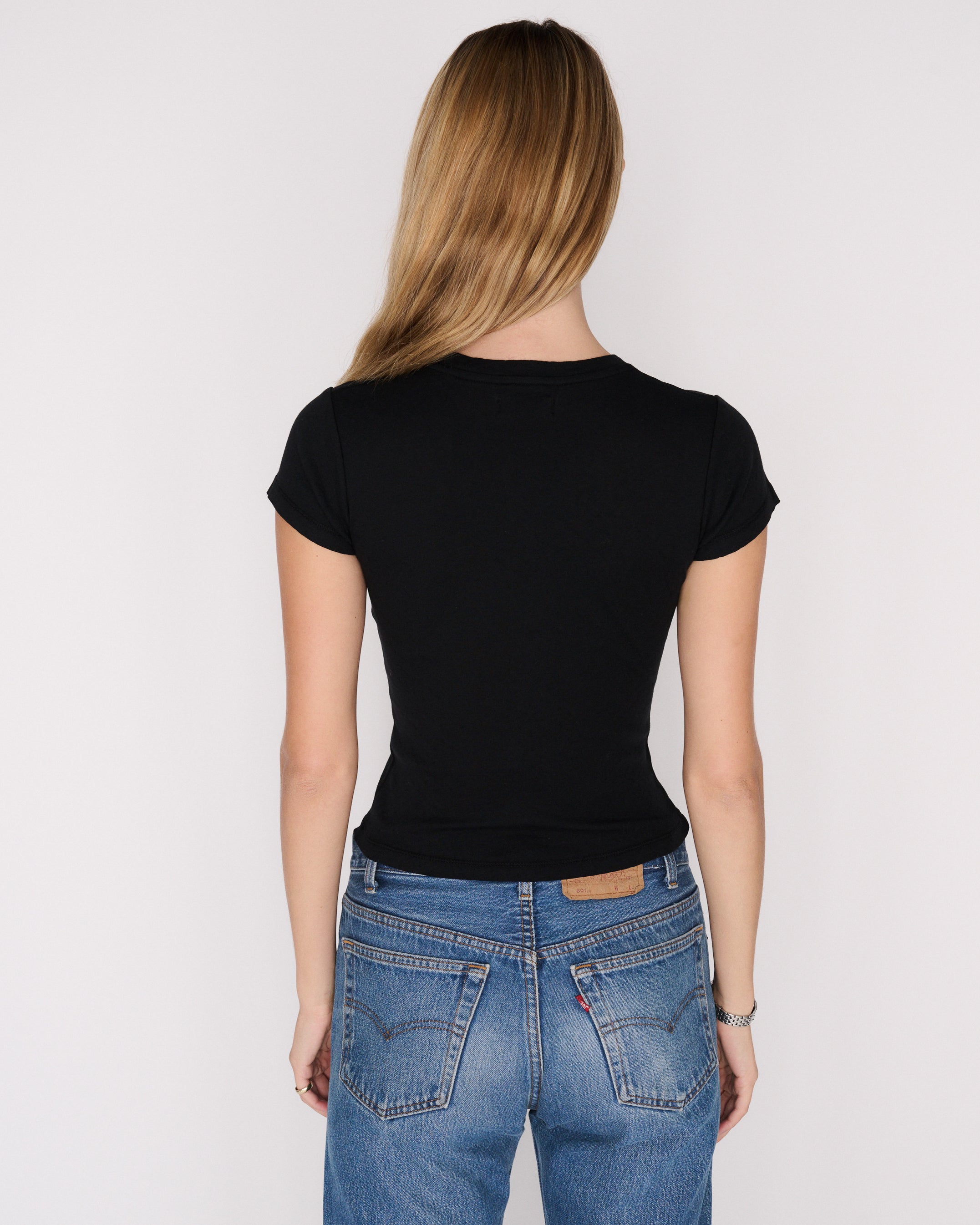 The RLT pointelle baby tee is crafted locally in LA with 100% cotton pointelle fabric. This tee is designed to have a slightly shrunken fit, though the material is very soft and offers a good amount of stretch. The pointelle tee is finished with a box-stitch hem.