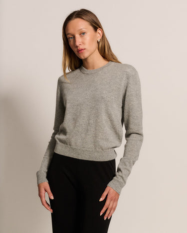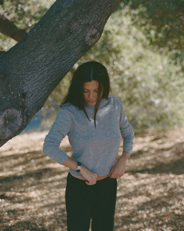 The Teri sweater is a cashmere wool blend sweater with a slightly cropped, boxy fit. Made here in Los Angeles, it's ribbed cuffs and hem allows for easy styling for all seasons.