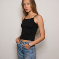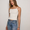 The Brianna tank has a rounded square neckline with spaghetti straps and a cropped baby fit. Made from 100% cotton locally in LA, and inspired by the best casual tanks of the 90’s, it can be worn layered or alone.