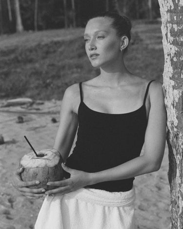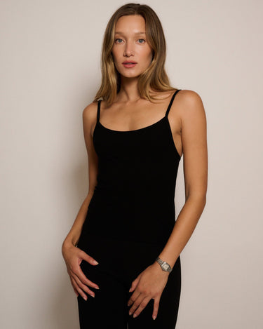 The RLT Ryder tank, made from a Tencel spandex blend and fabricated locally in LA, is a spaghetti strap tank top with a classic neckline and lower back