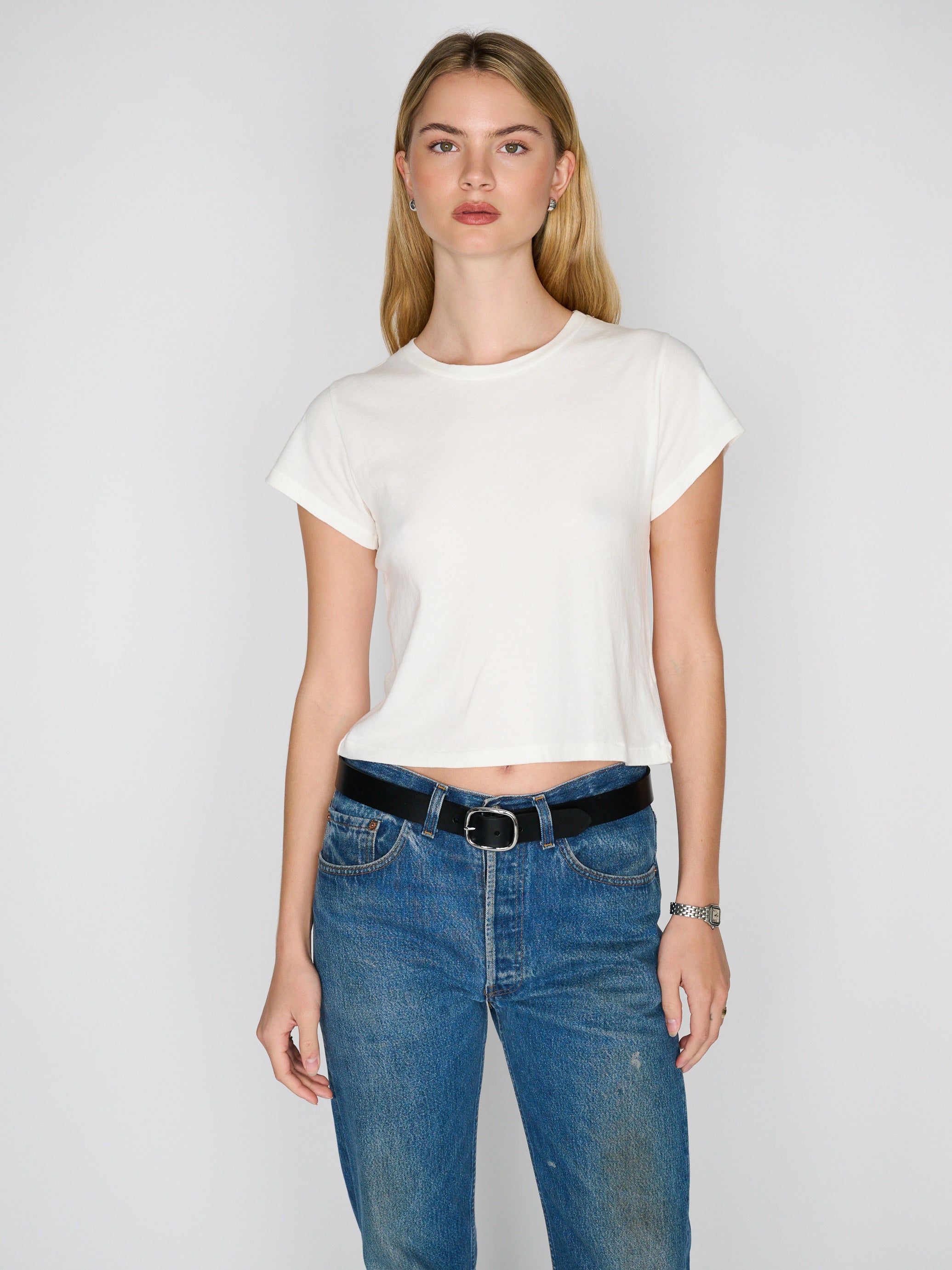 The Easy Tee is perfectly soft and cozy with a boxy body and slightly cropped fit. Inspired by the best vintage tees, it is crafted from 100% cotton and finished with a single stitch hem and sleeve, as always in Los Angeles